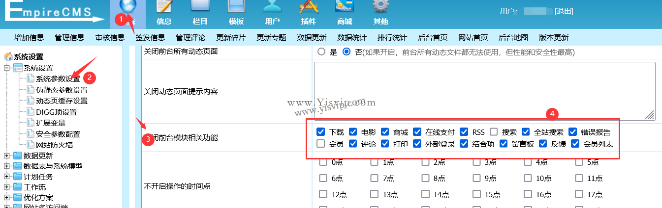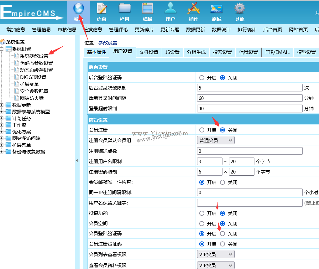 7、如果網站沒有用到會員和投稿功能,可以在后臺關閉: