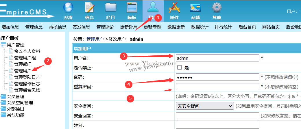 2、禁用默認賬號admin眾所周知很多程序后臺喜歡用admin作為賬號這樣增加了一定的風險。所以安裝好后請及時修改默認用戶名和密碼(用戶名密碼盡量復雜一些)